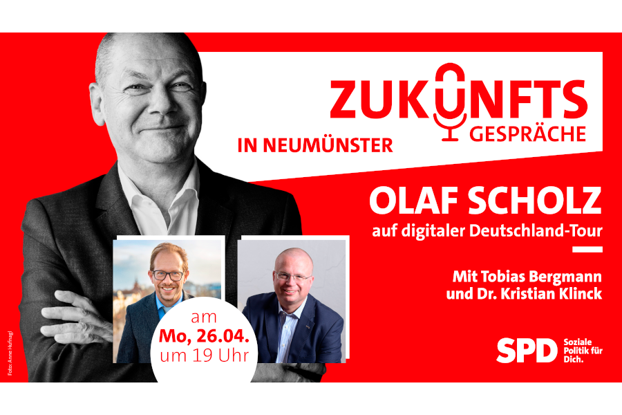 Die SPD Neumünster lädt alle Interessierten herzlich dazu ein, am Montag, den 26. April 2021 von 19 bis 20 Uhr an der digitalen Diskussionsveranstaltung mit Olaf Scholz teilzunehmen. Räumlich getrennt – und doch geht es um das Zusammenkommen und miteinander diskutieren.